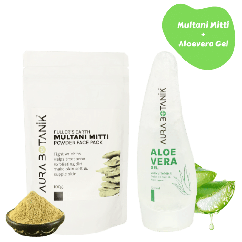 Unlock the doorway to radiant and naturally beautiful skin with our specially curated Aura Botanik Skincare Combo Pack. This thoughtfully designed duo combines the rejuvenating properties of the Aloe Vera Hydration Gel and the purifying benefits of the Multani Mitti Natural Face Pack, offering you a comprehensive skincare solution that harnesses the power of natural ingredients.