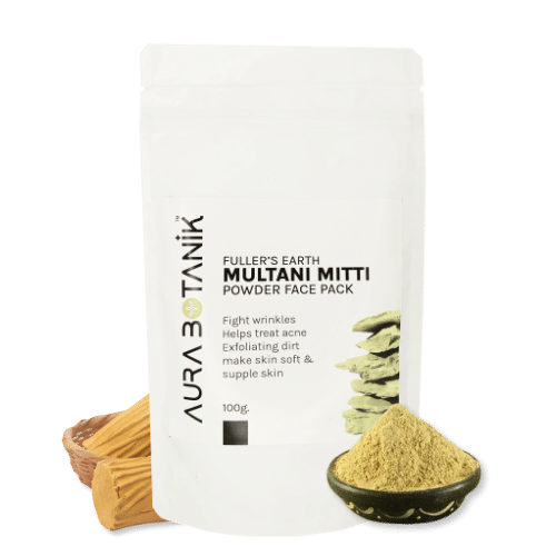 Mix two tablespoons of Aura Botanika Multani mitti with a tablespoon of Neem powder, and a tablespoon of Rose water. Squeeze a little bit of lemon juice into the paste and mix well Apply onto cleansed skin and rinse with lukewarm water after 15 minutes.